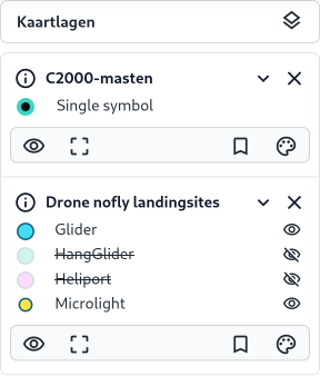 Dit icoon () bepaalt of een kaartlaag zichtbaar is op de kaart. Door op het oogpictogram